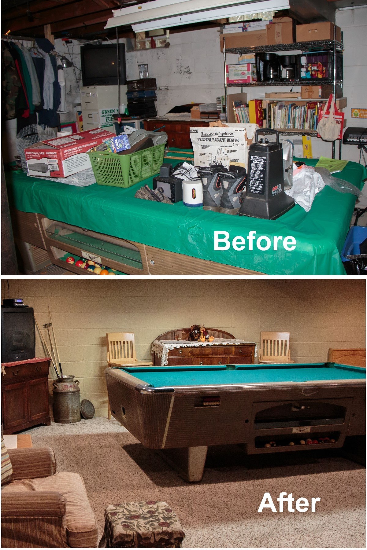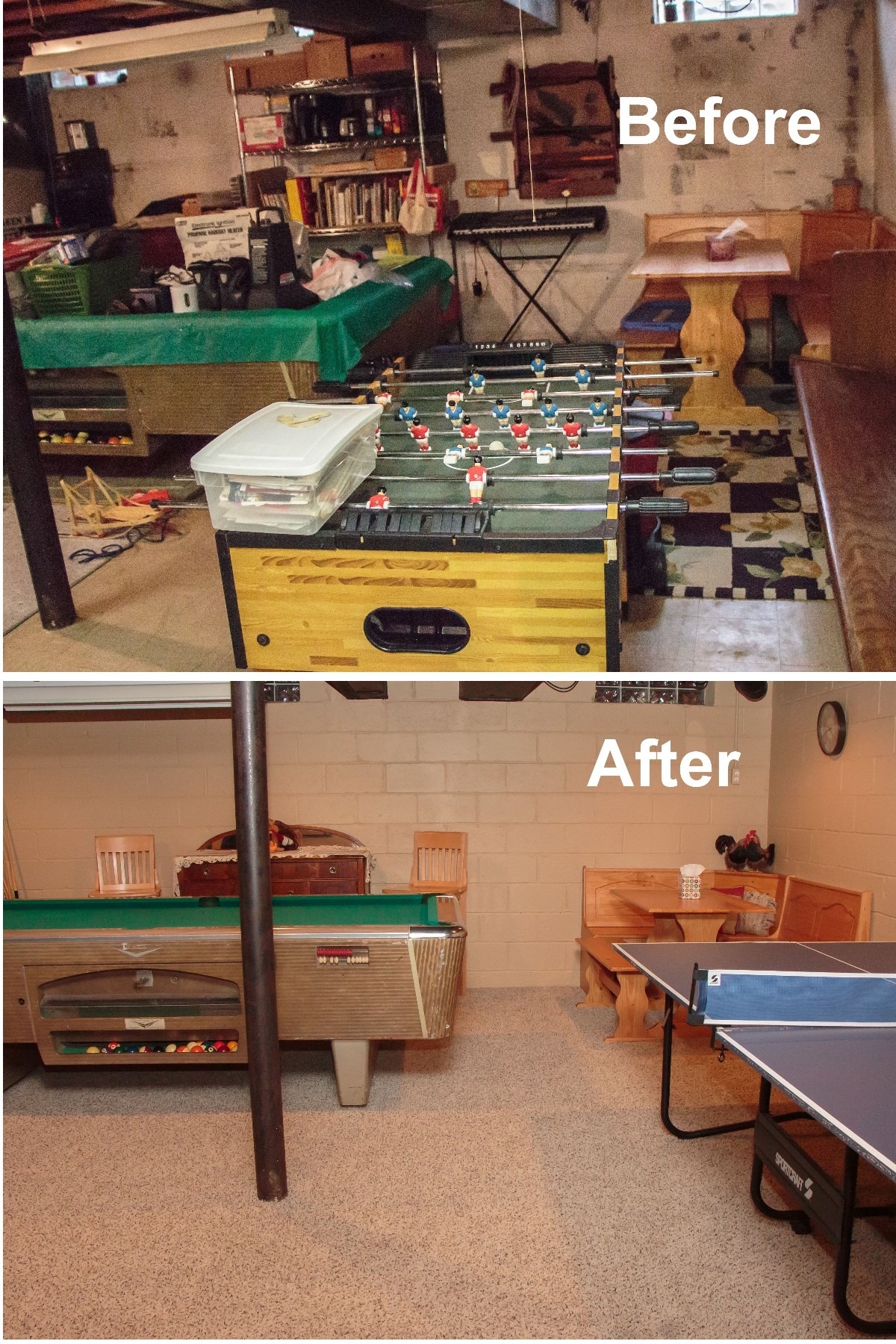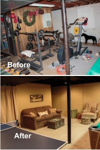 Even if you don’t want to spend the thousands and thousands it takes to remodel your basement – some paint, carpet and good organizing gives you and your family a whole new living space!